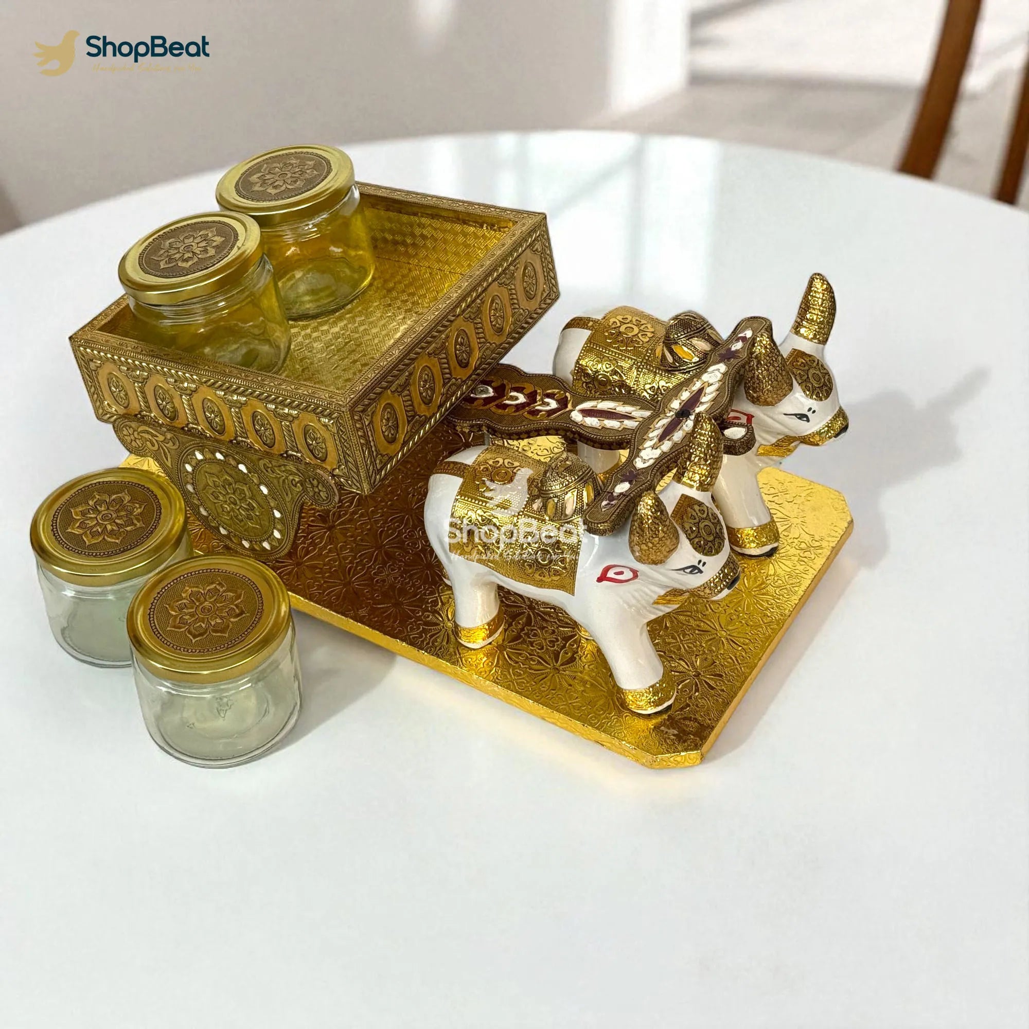 Golden Oxidised Bullock Cart Dry Fruit Box – Decorative Wooden Gift Box | ShopBeat
