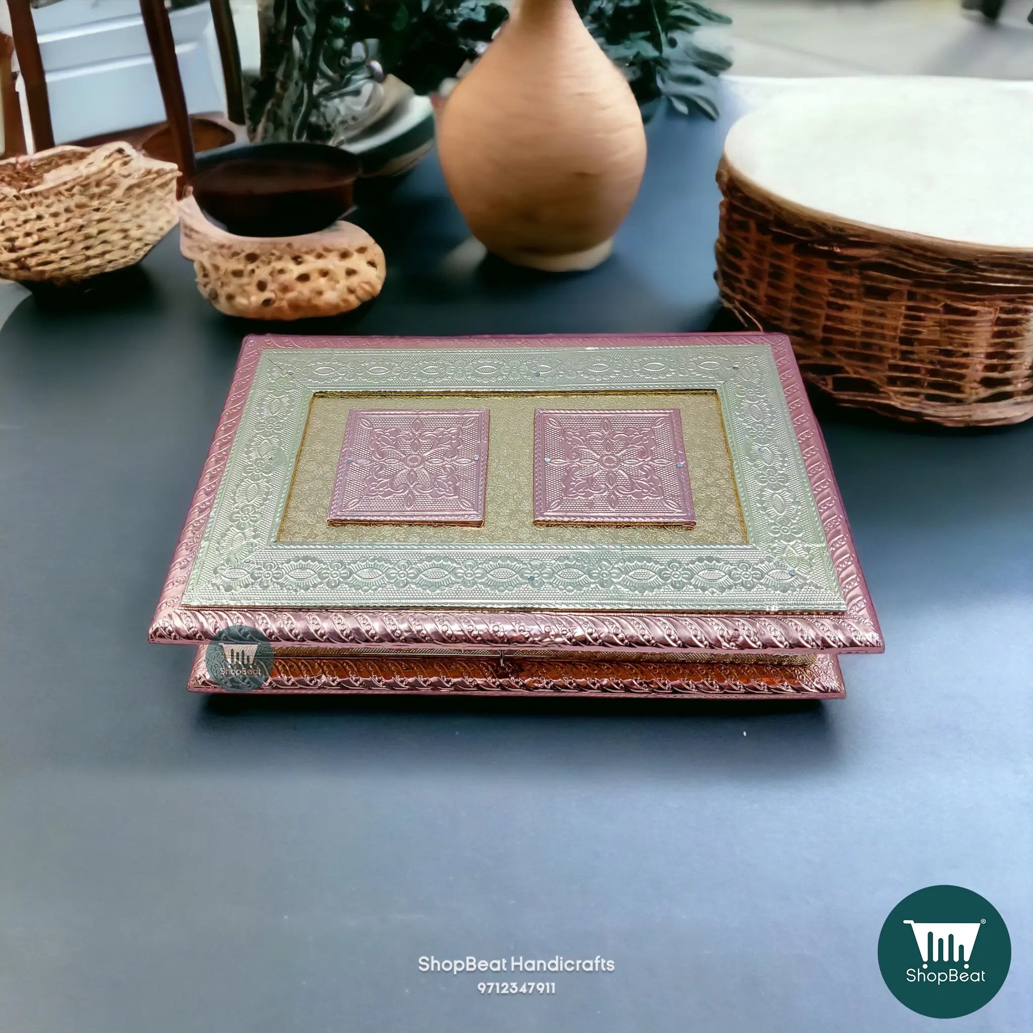 Copper-German Oxidised Wooden Dry Fruit Box 11x7 – Corporate Gift | ShopBeat
