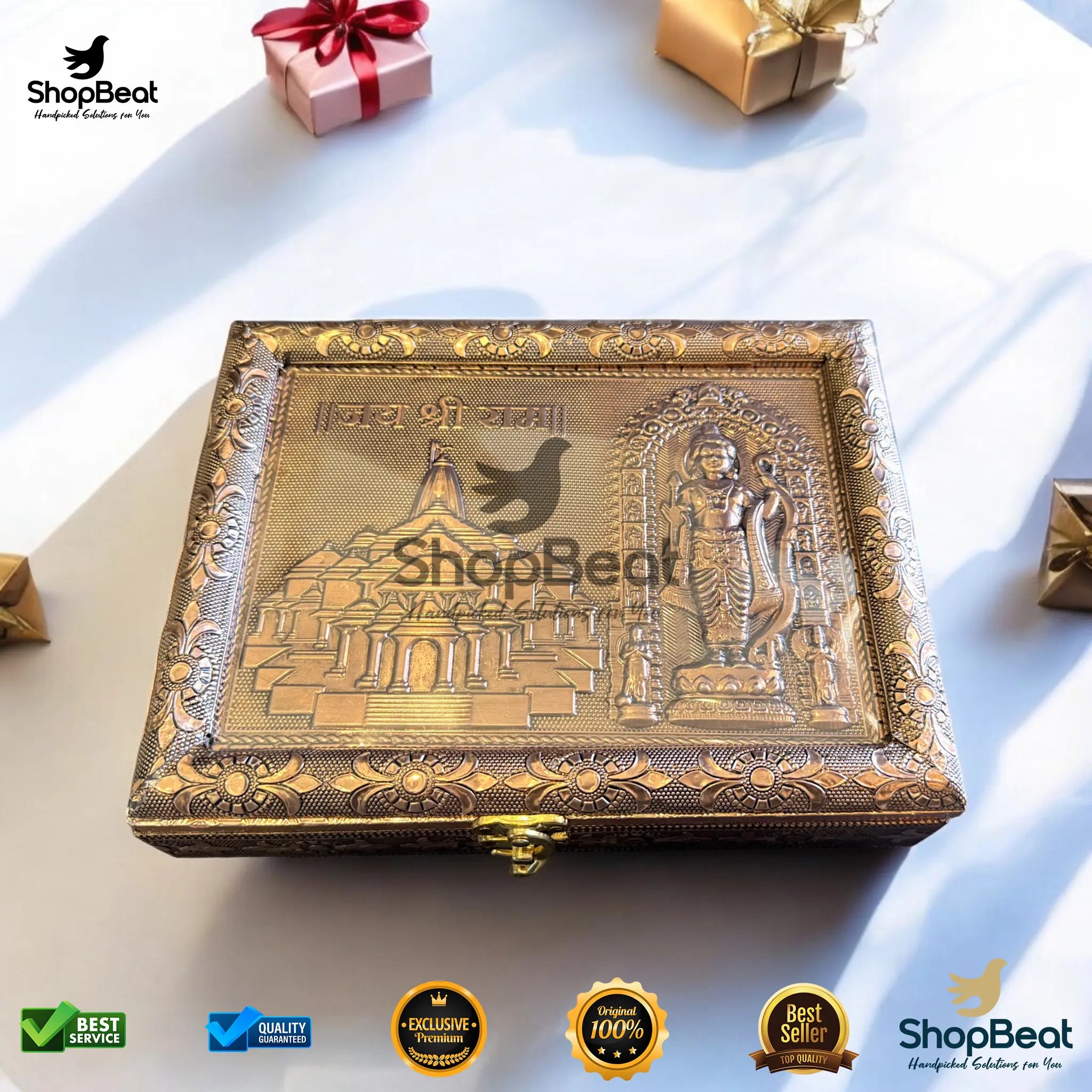 Copper Oxidised Dry Fruit Box – Shree Ram Design (9x7 Inch)