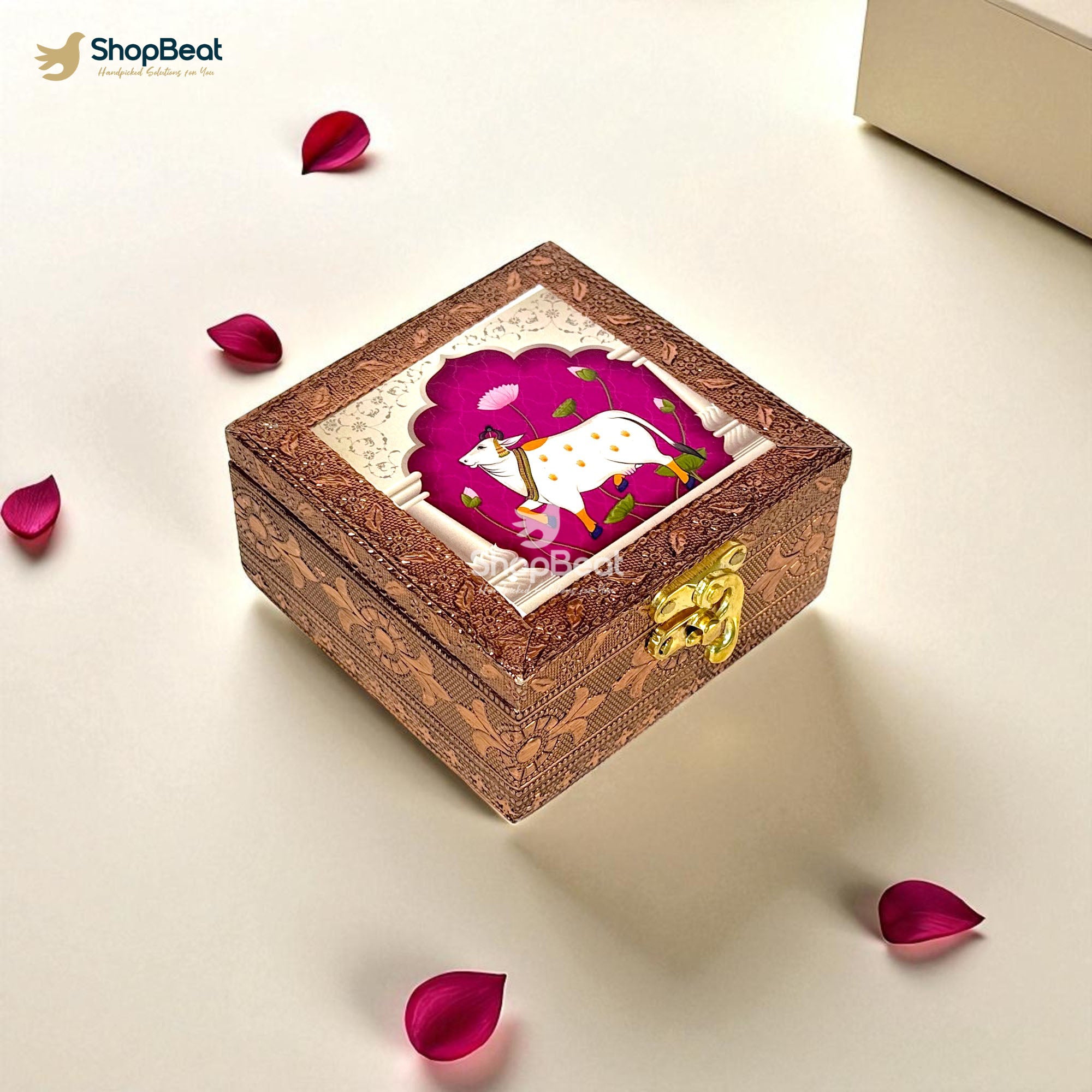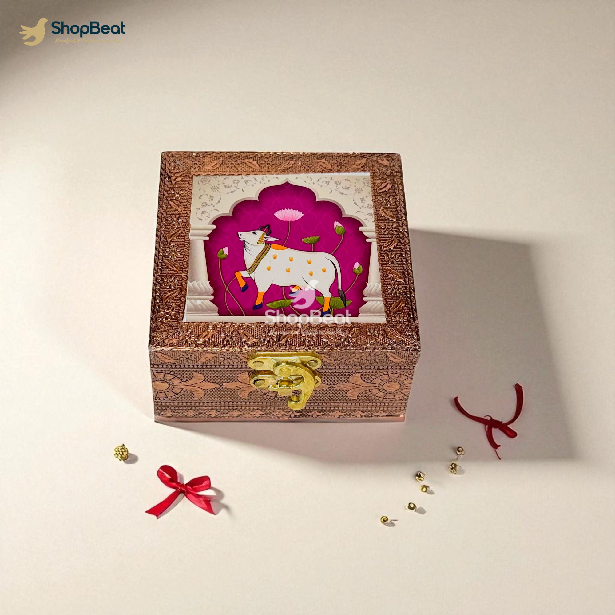 Copper Oxidised White Pichwai Design Multipurpose Box 4x4 – Pooja & Jewellery Storage