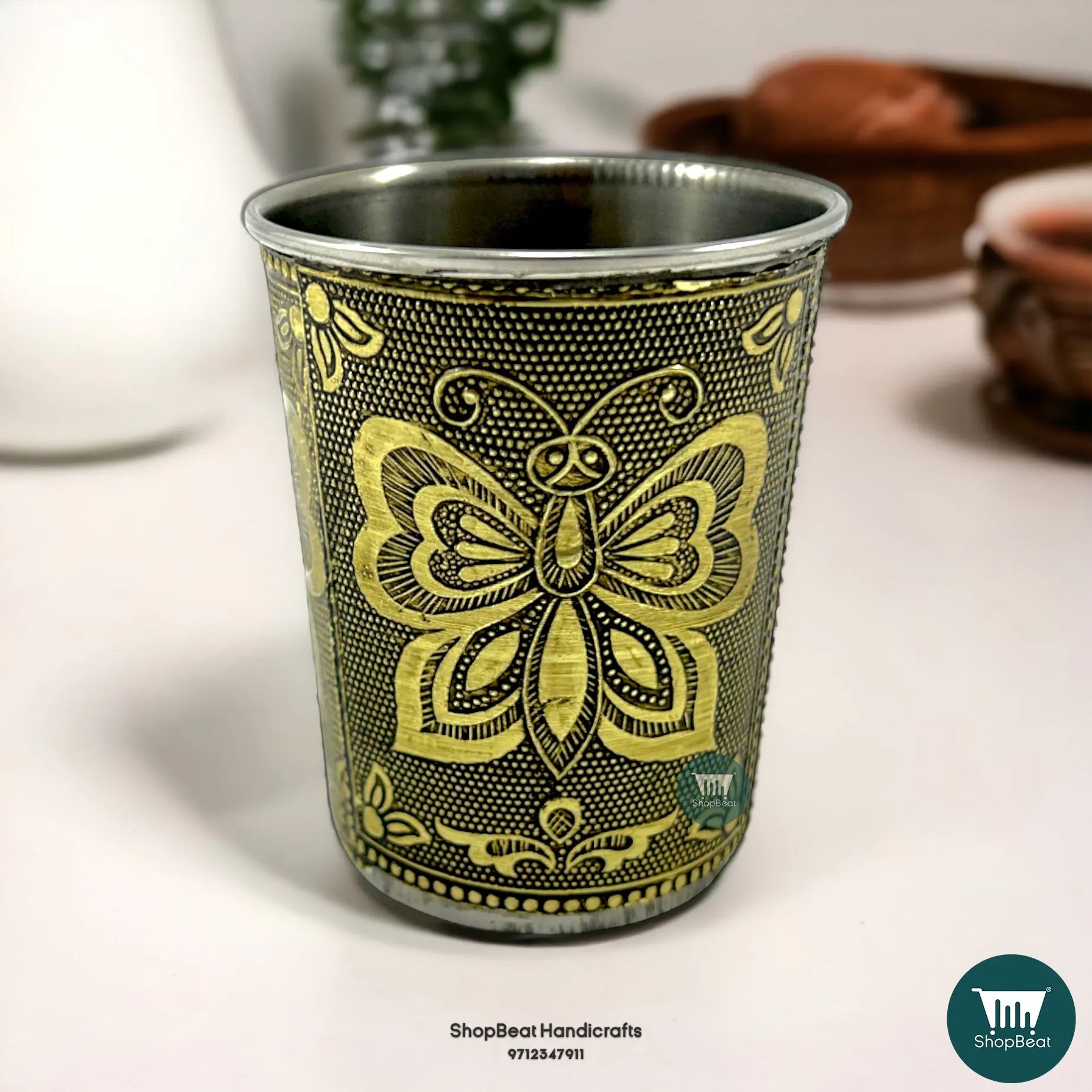Golden Oxidised Butterfly Design Stainless Steel Water Glass – Gifting Glassware