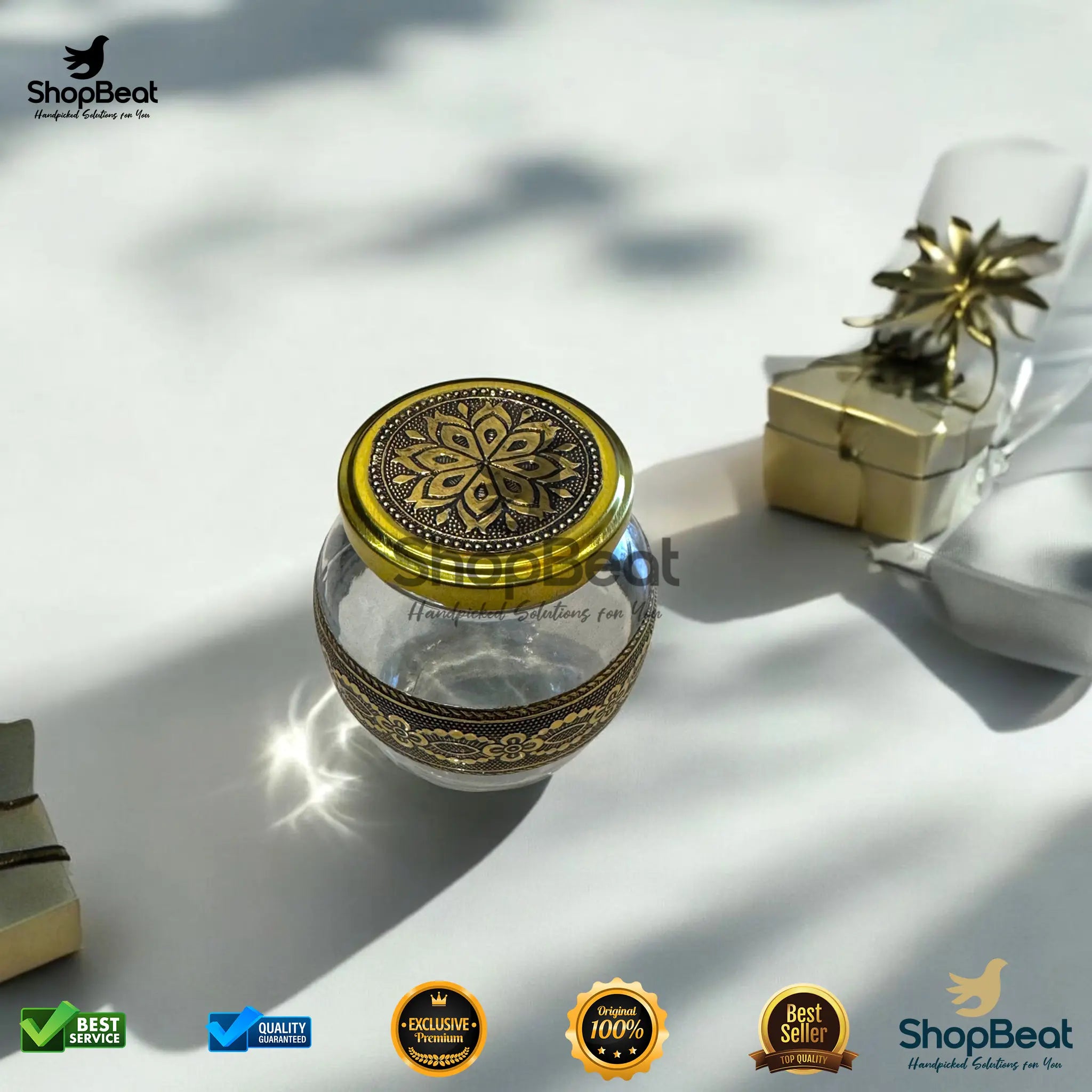 Golden Oxidised Handi Glass Jar – 350ml Traditional Gift Jar