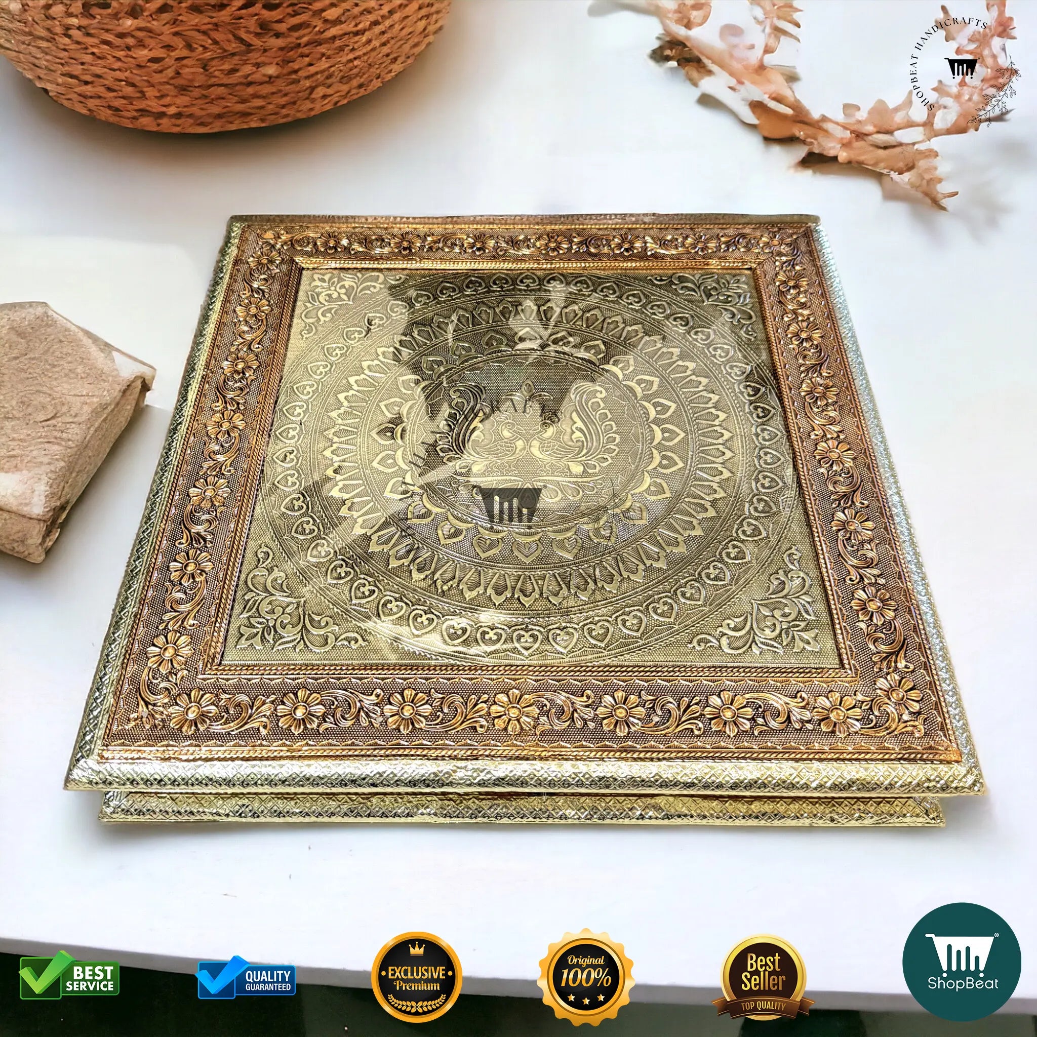 The Golden-Copper Oxidised Peacock Gift Box 15×15 is a masterpiece of handcrafted artistry, designed for luxurious and festive gifting. Featuring a beautiful peacock design symbolizing grace and prosperity, this decorative dry fruit box blends traditional aesthetics with premium quality craftsmanship. Its golden-copper oxidised finish enhances its rich, antique appeal, making it a perfect choice for weddings, festivals, and corporate events.