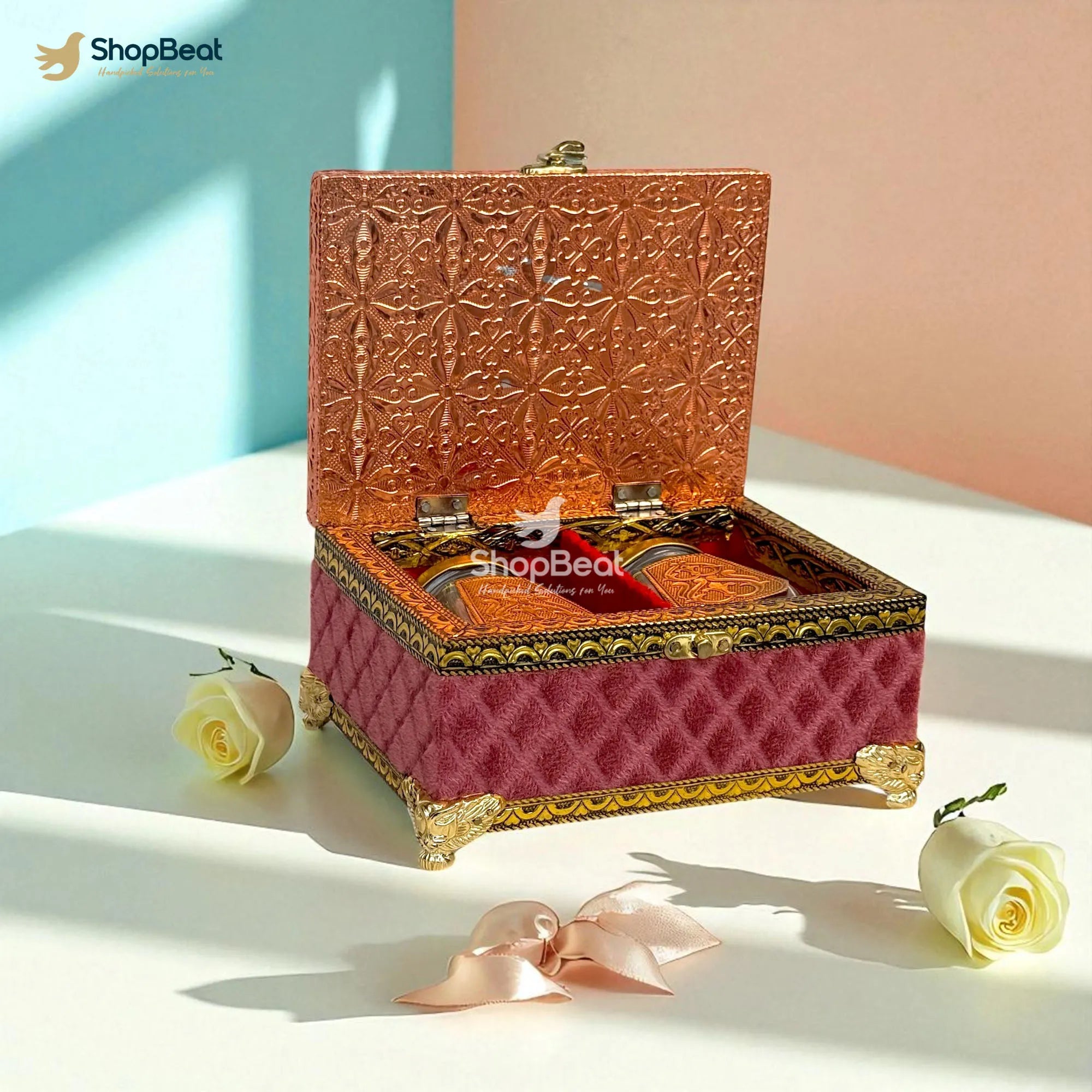 Pink Velvet Dry Fruit Gift Box with 2 Glass Jars