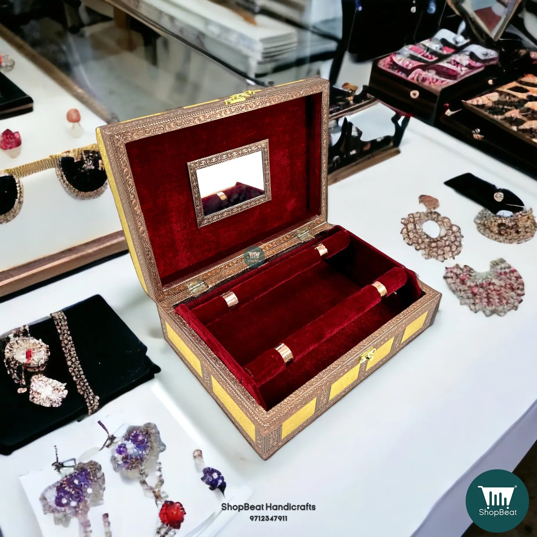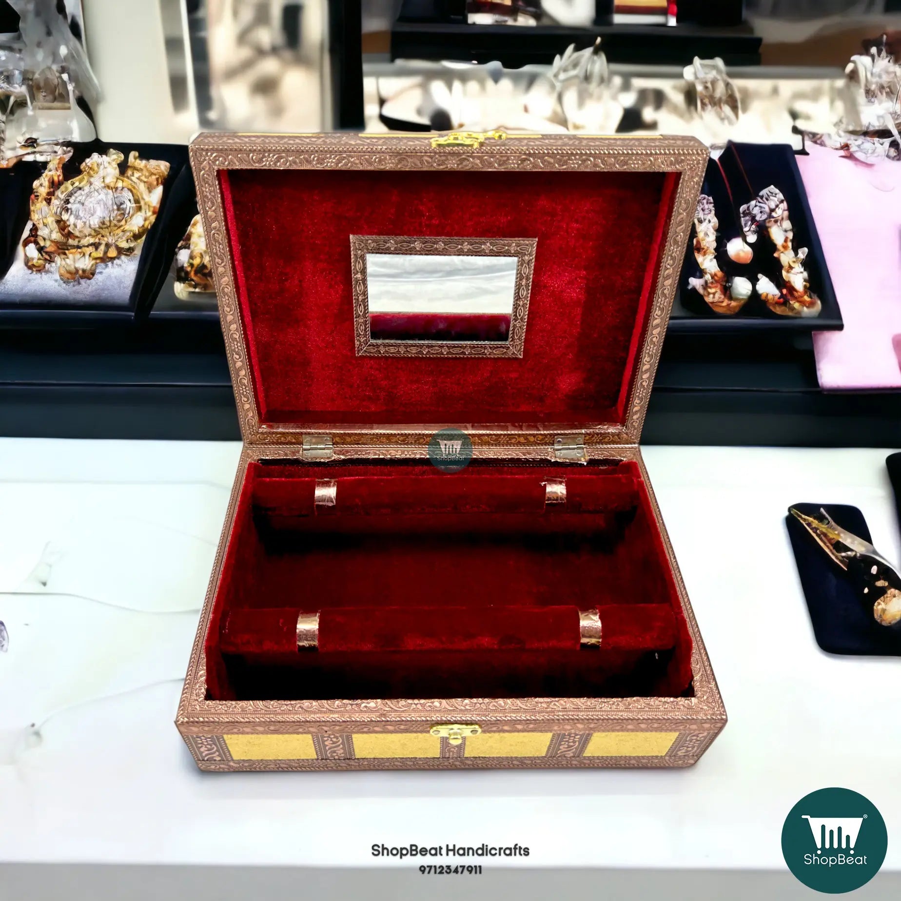 Copper-Golden Rajwadi 2 Roll Wooden Bangle Box – Oxidised Jewelry Storage (11x8)
