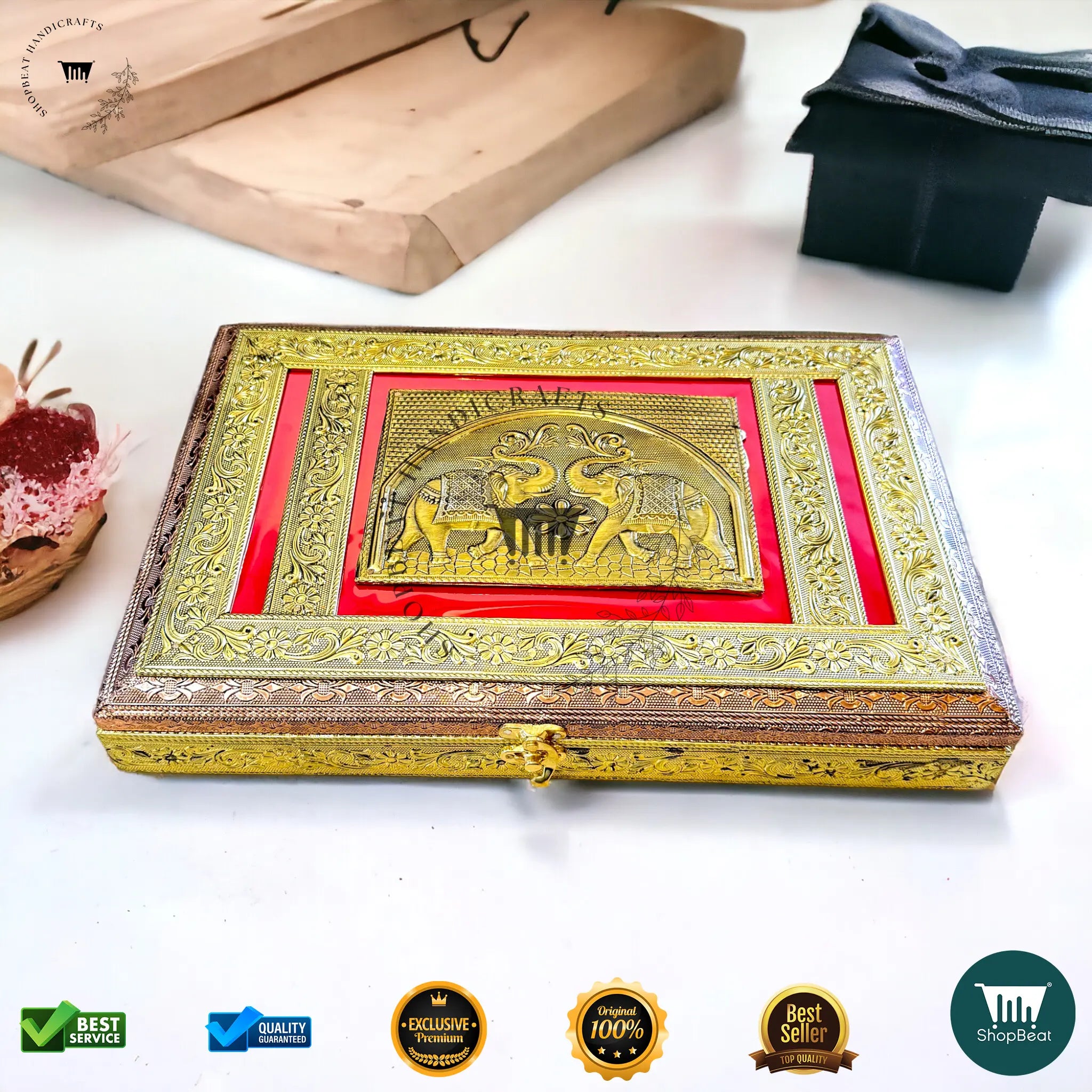 Enhance your gifting experience with the Golden-Copper Oxidised Red Velvet Gift Box 15×10. Designed with an oxidised golden-copper finish and a luxurious red velvet interior, this decorative box is perfect for festive, wedding, and corporate gifting.