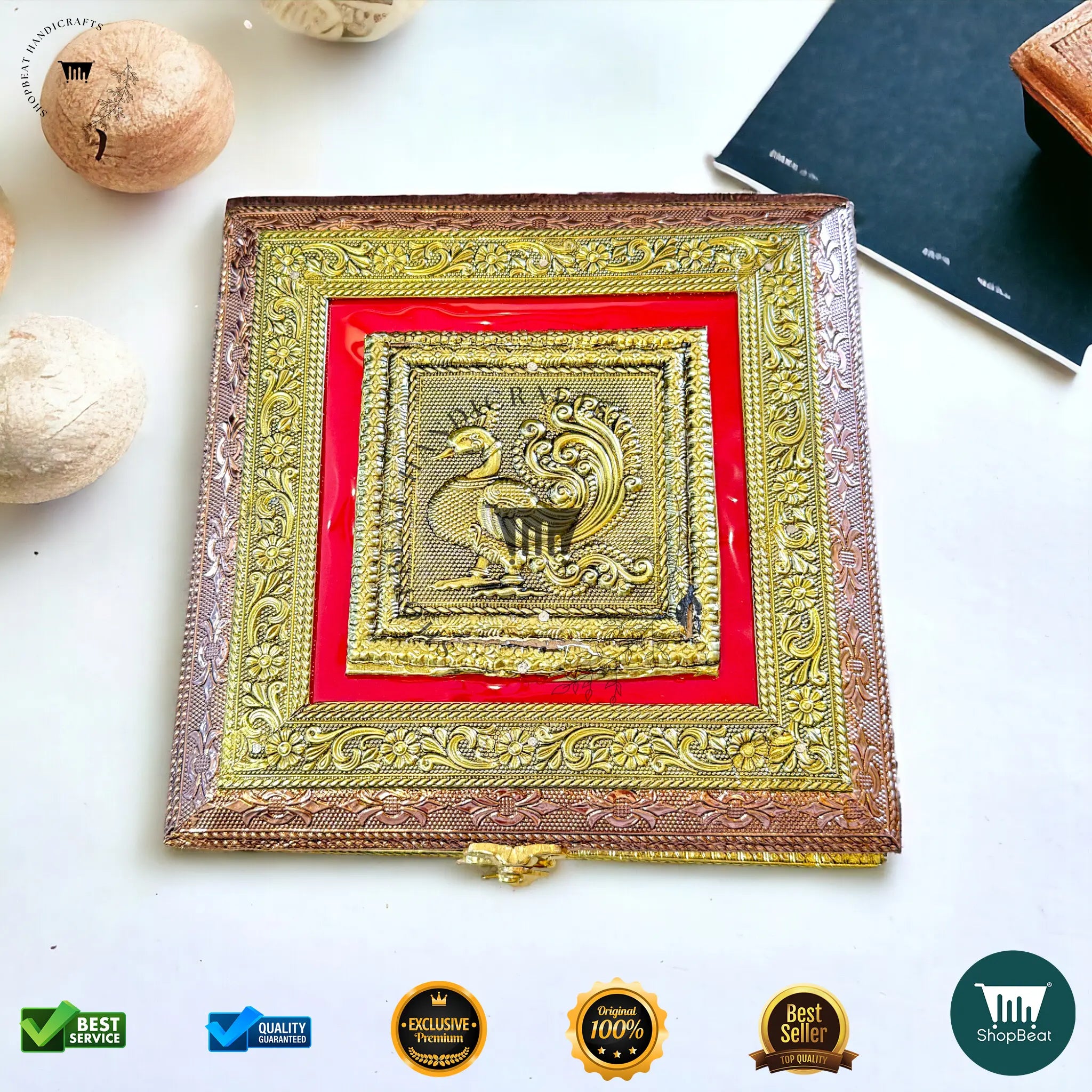 Presenting the Golden-Copper Oxidised Red Velvet Dryfruit Box 8×8, an exquisite blend of luxury and tradition. This handcrafted decorative box features a rich red velvet exterior with golden-copper oxidised detailing, making it a perfect choice for festive and corporate gifting.