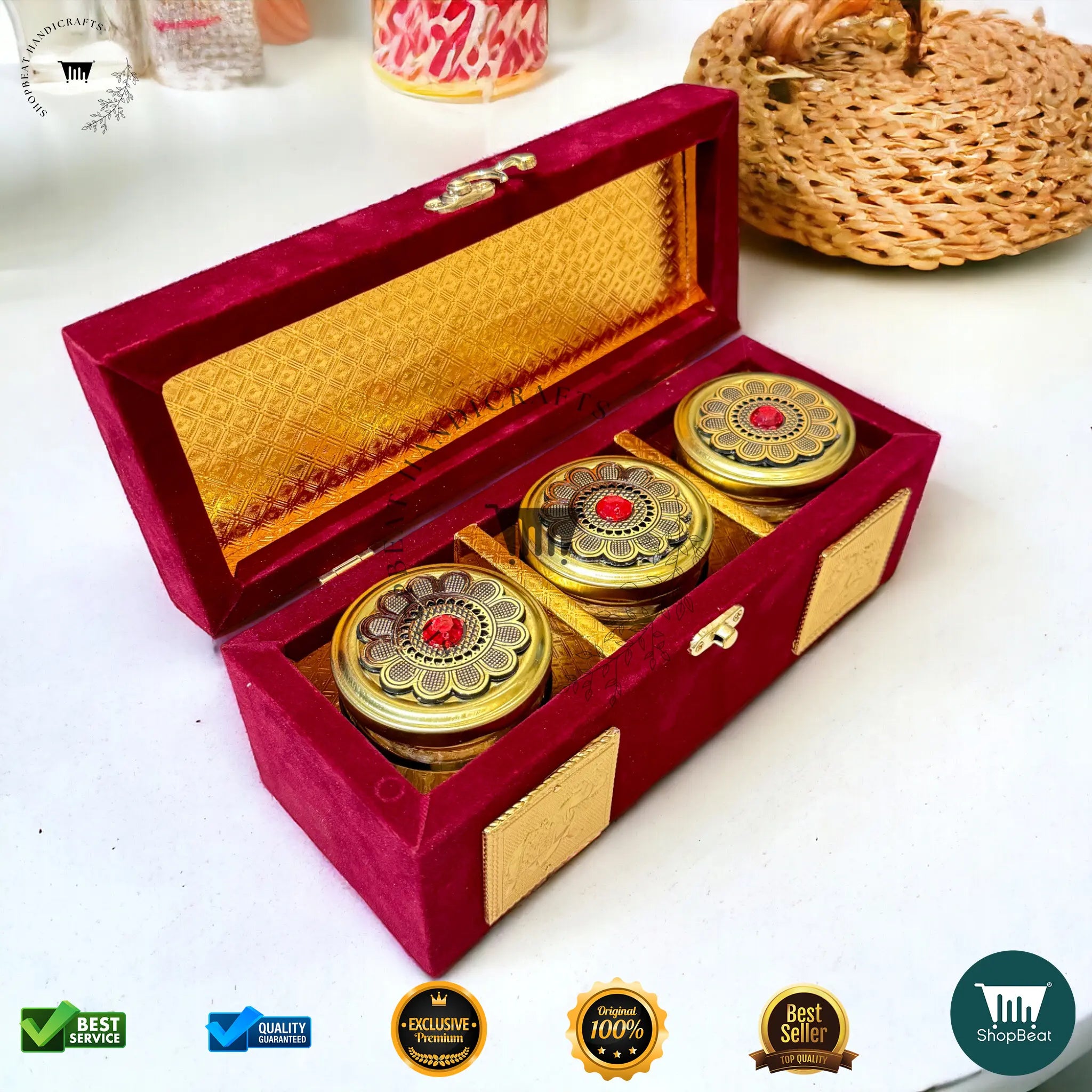 Premium Dry Fruit Box – Red Velvet with 3 Glass Jars (10x4 Inch)