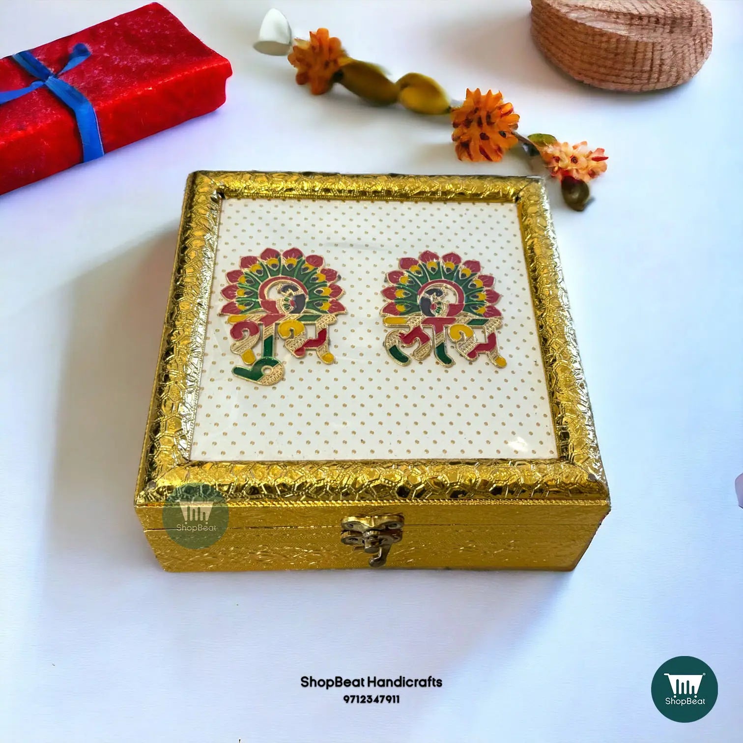 Golden Oxidised Silk Dry Fruit Box with 4 Glass Jars 8x8 | ShopBeat