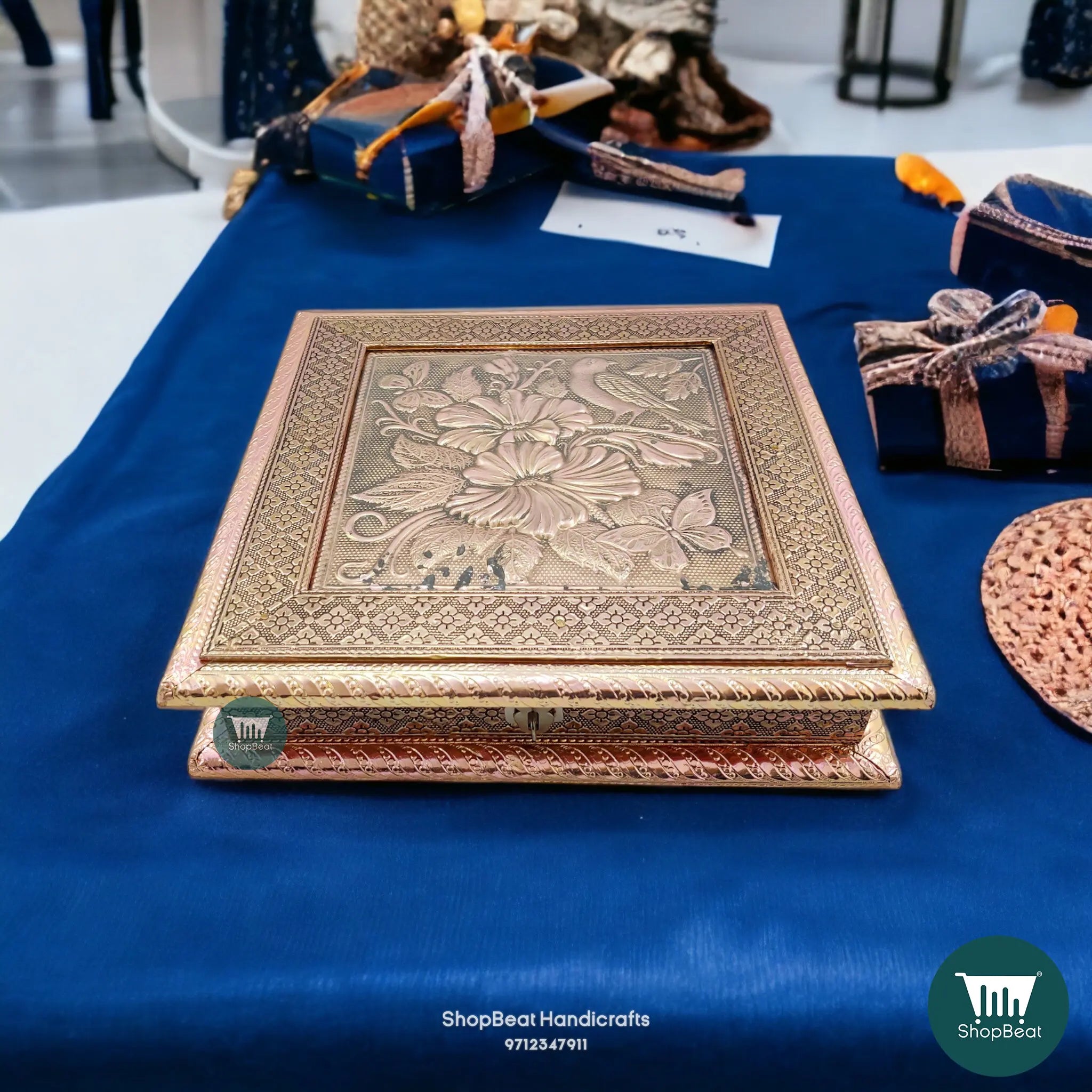 Copper Oxidised Wooden Dry Fruit Box – Sparrow Flower 10x10 Housewarming Gift | ShopBeat