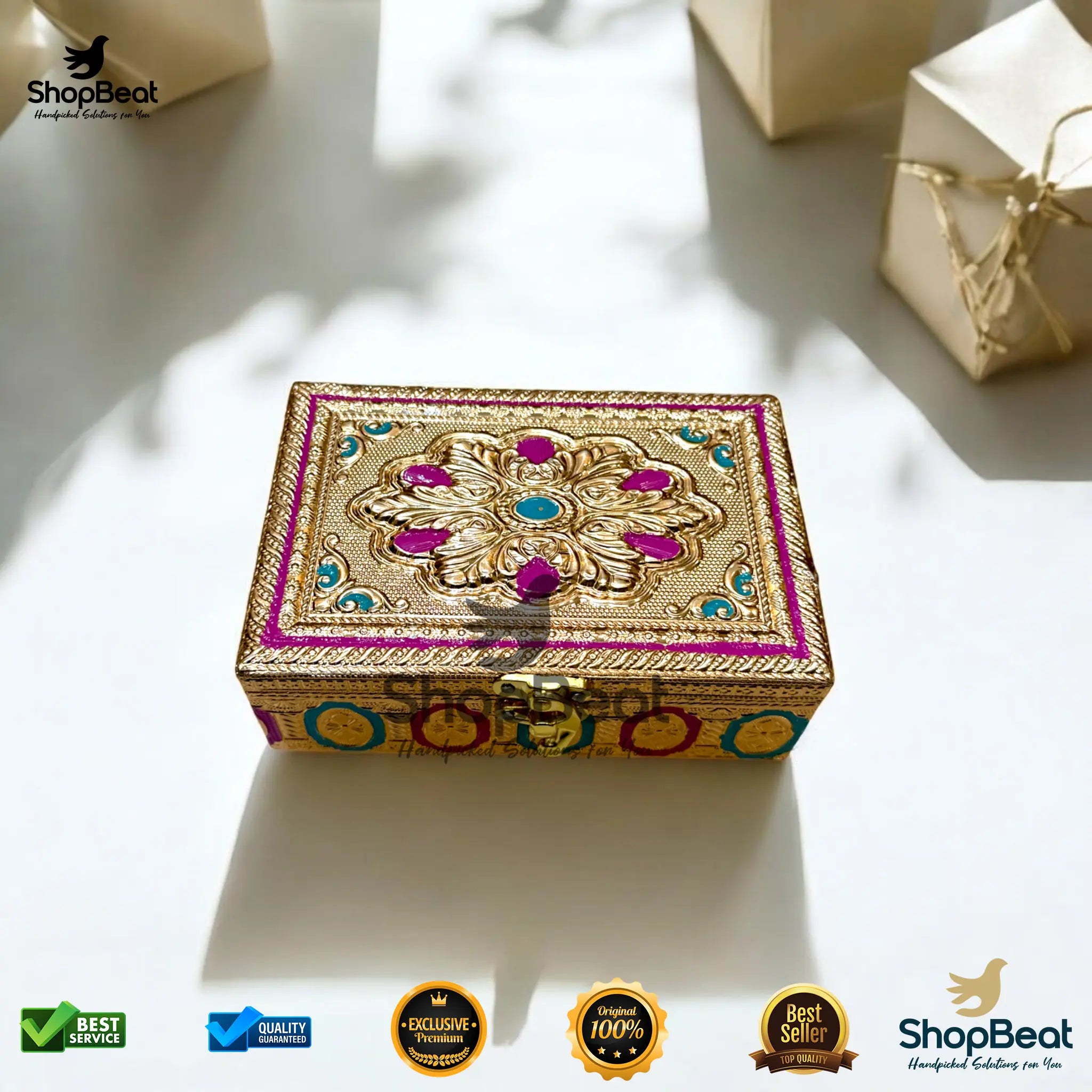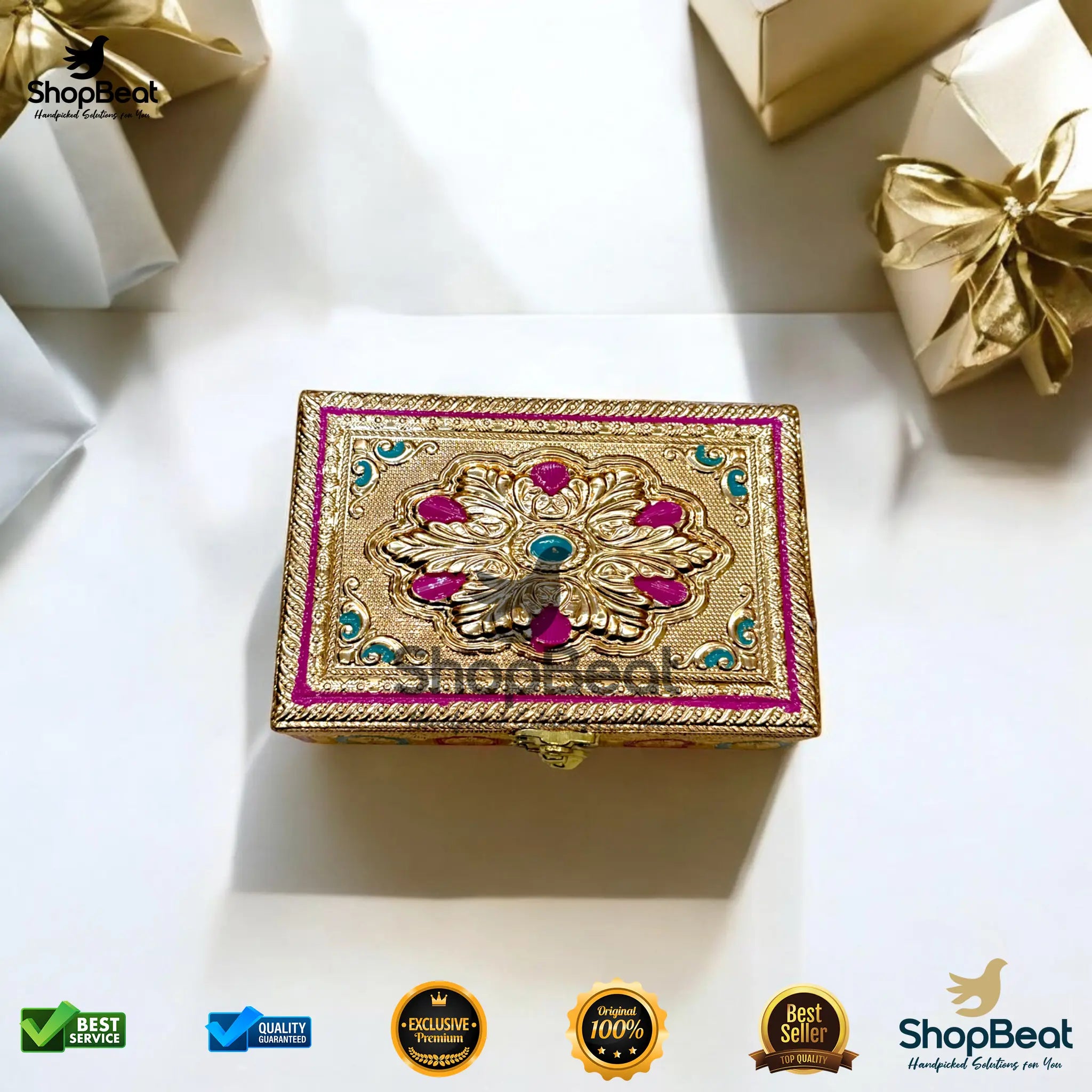 Golden Meenakari Multipurpose Box – 4x6 Inch Pooja & Jewellery Gift Box